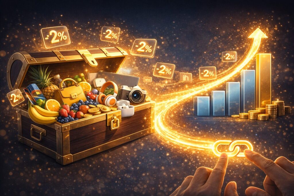 基本となる報酬は、購入金額の2%。これを「たったの2%か」と捉えるか、「何でも売れるプラットフォームで2%ももらえるのか」と捉えるかで、あなたの稼ぎの桁が変わります。1万円の商品が売れれば200円、5万円なら1000円です。メルカリという、購買意欲の塊が集まる場所において、この数字は驚異的な積み上げを可能にします。